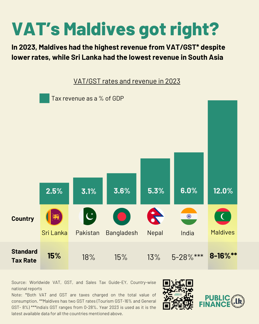 This infographic was posted on the Public Finance Platform (Insight: VAT revenue collection: Maldives highest, Sri Lanka lowest) in English and can be accessed from the link below.