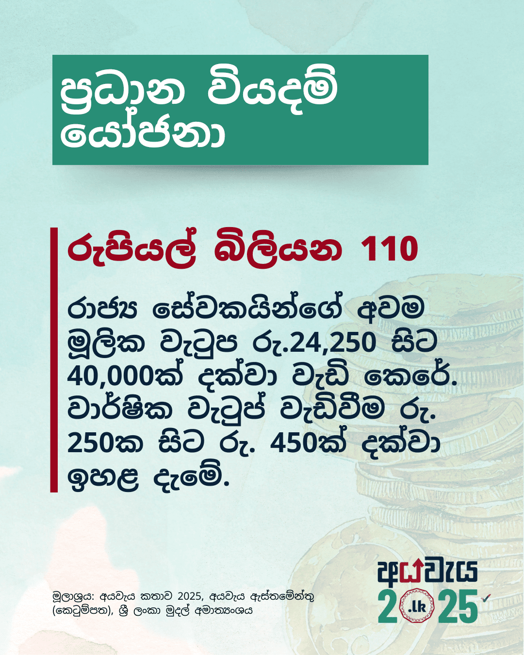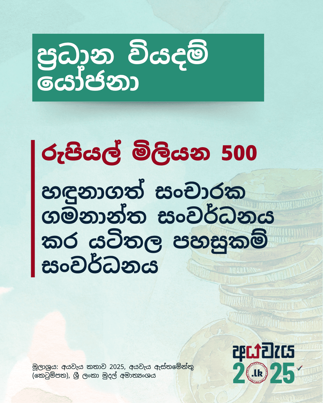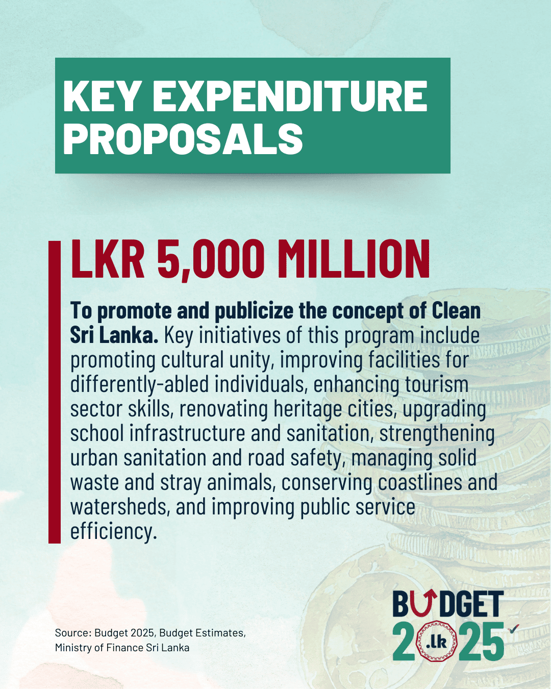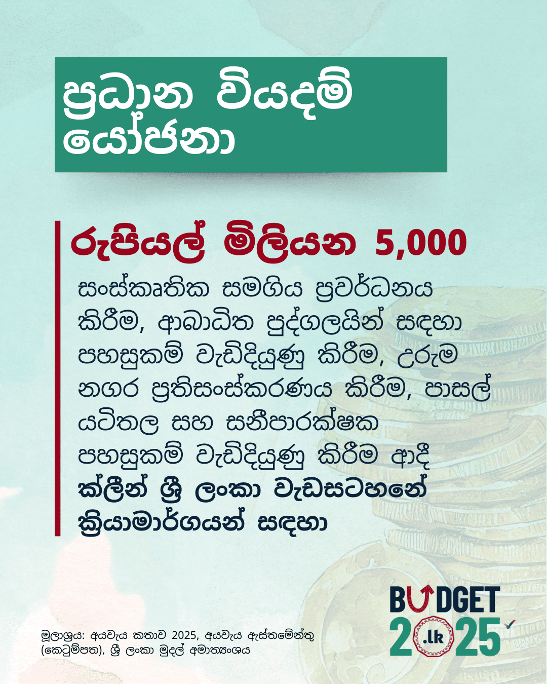 https://www.publicfinance.lk/en/topics/budget-2025-expenditure-proposals-1740460094https://www.publicfinance.lk/sin/topics/budget-2025-expenditure-proposals-1740460094