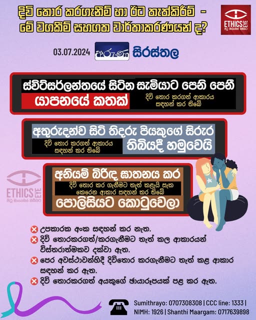 On July 03, 2024, Aruna newspaper reported three suicide-related incidents with several ethical violations. These included not publishing helplines, providing detailed descriptions of the methods used, mentioning previous attempts, and publishing photographs of the deceased. Media is advised to adhere to ethical guidelines and avoid negative or sensationalist reporting on suicide.